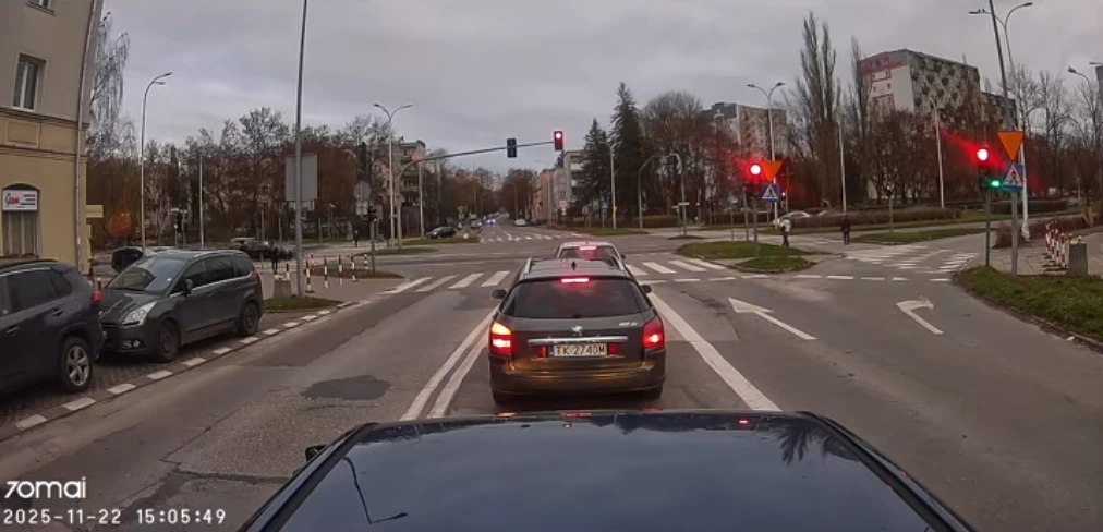 Zawracanie przy ul. Uniwersyteckiej w Kielcach: gdzie patrzeć, kiedy rozpocząć manewr i jak nie najechać na linię ciągłą.